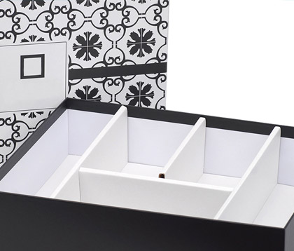 Adicionalmente nuestras cajas pueden contener en su interior diferentes tipo de material para dotar al producto de una mejor presencia y seguridad. Los siguientes interiores pueden ser adaptados a cualquier tipo de Caja forrada o Estuche: